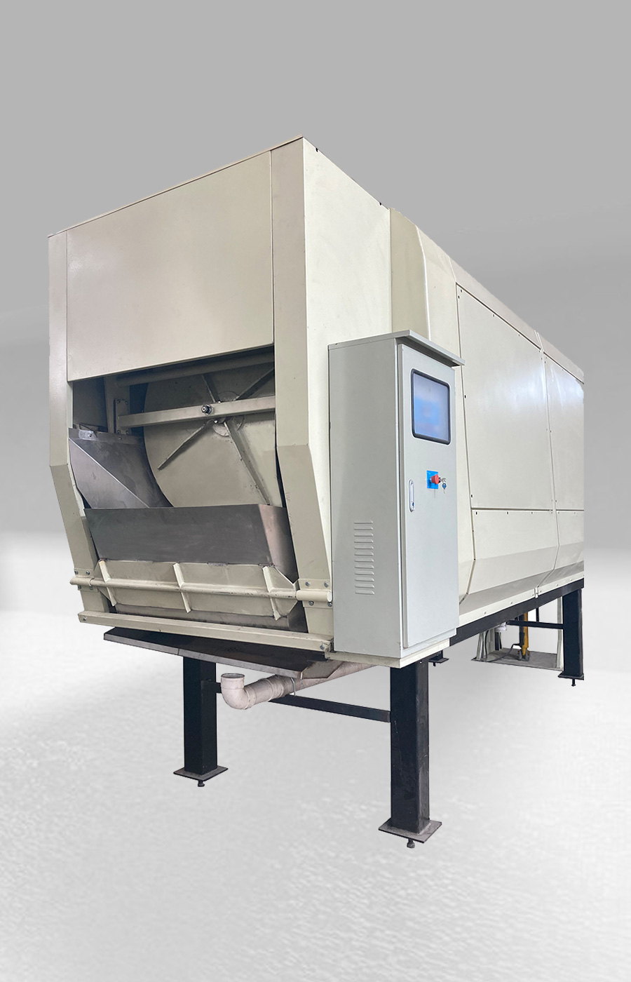 工作原理:滾筒螺旋葉片旋轉(zhuǎn)壓縮儲(chǔ)存。滾筒和葉片采用SUS304不銹鋼板制造,耐腐蝕性好。當(dāng)垃圾進(jìn)入滾筒內(nèi),滾筒旋轉(zhuǎn),在螺旋葉片作用下壓縮垃圾...